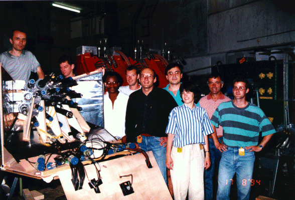 On the left side of the picture one sees the open box with CsI crystals and photomultiplier (from the back) which was tested in the beam. It consisted of 26 CsI crystals which represent about 10% of the final calorimeter.