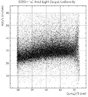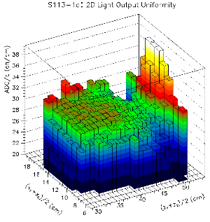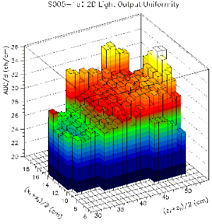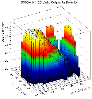 The uniformity results obtained with a 137Cs source are clearly correlated to our tomography data. Not only the general trend is reproduced, but also the quantitative uniformity obtained for a central axis can be measured to some extend. Since a 0.662 MeV gamma from the 137Cs source penetrates several centimeters of CsI on average, not only the surface is probed but also the interior of our CsI crystals. Due to the lack of any tracking of individual gammas, the edge regions of the CsI cannot be probed. Only geometries where the collimated 137Cs source points perpendicular to the crystal surface produce useful results.