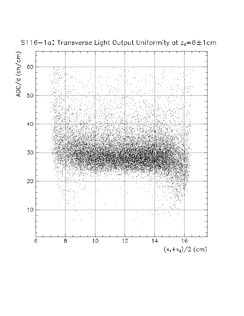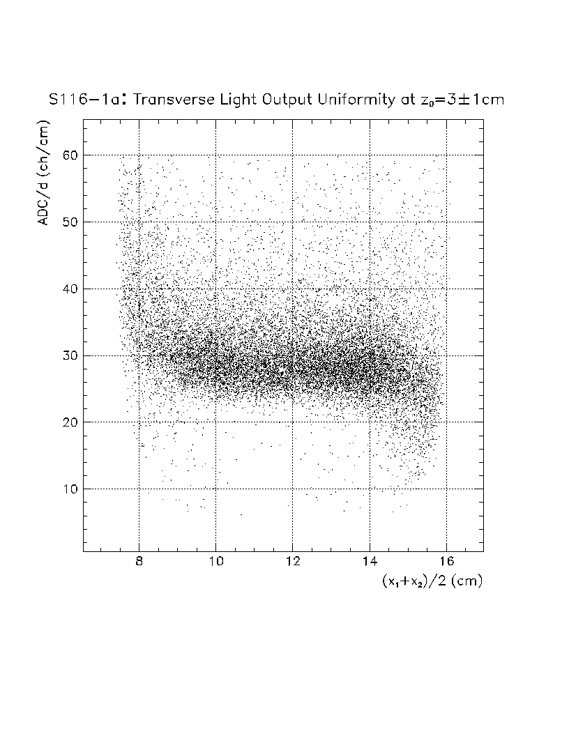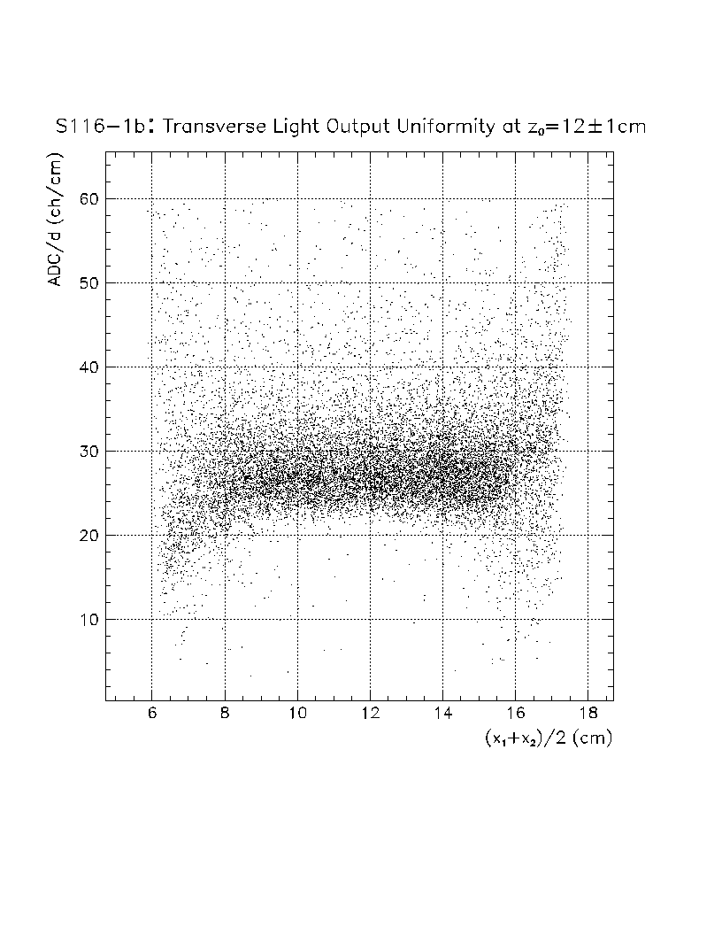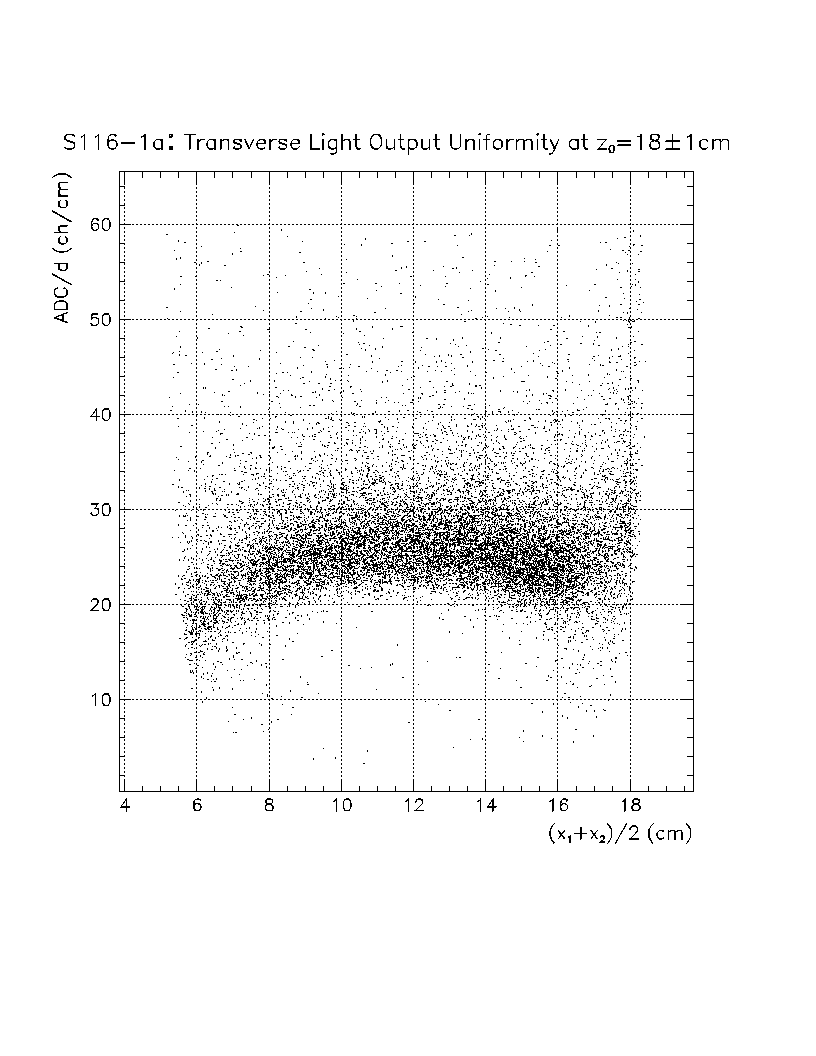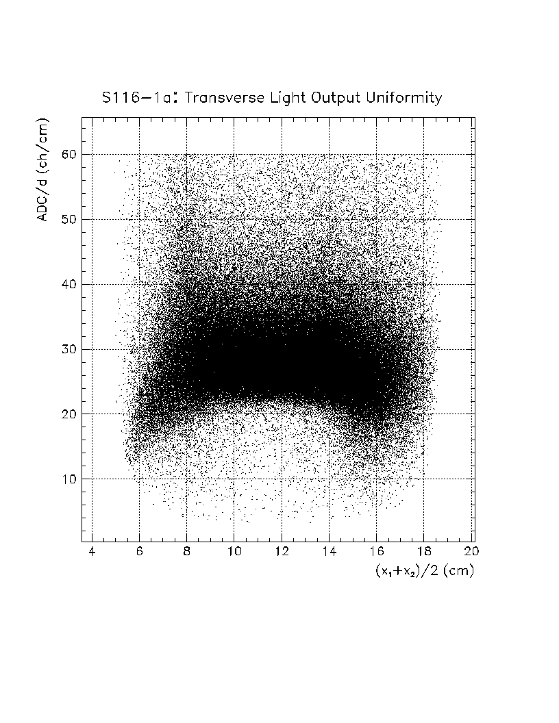 Light output per unit pathlength in the crystal (s/d) is plotted as a function of z-position in the crystal. The front face of the crystal corresponds to z=0 cm, while the back of the crystal is z=22 cm. The nonuniformity constant is equal to the slope of this scatter plot, divided by the average value of s/d in the region of interest. Using this definition, a negative axial nonuniformity corresponds to a decreasing value of s/d from z=0 to s=22 cm.